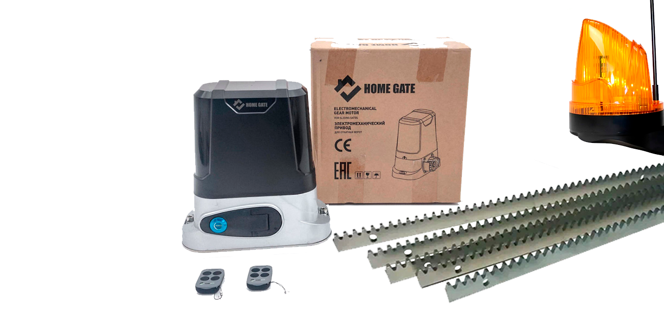 Привод для откатных ворот HOME GATE LTM 800 light (Wi-Fi) + рейка 5 шт + лампа