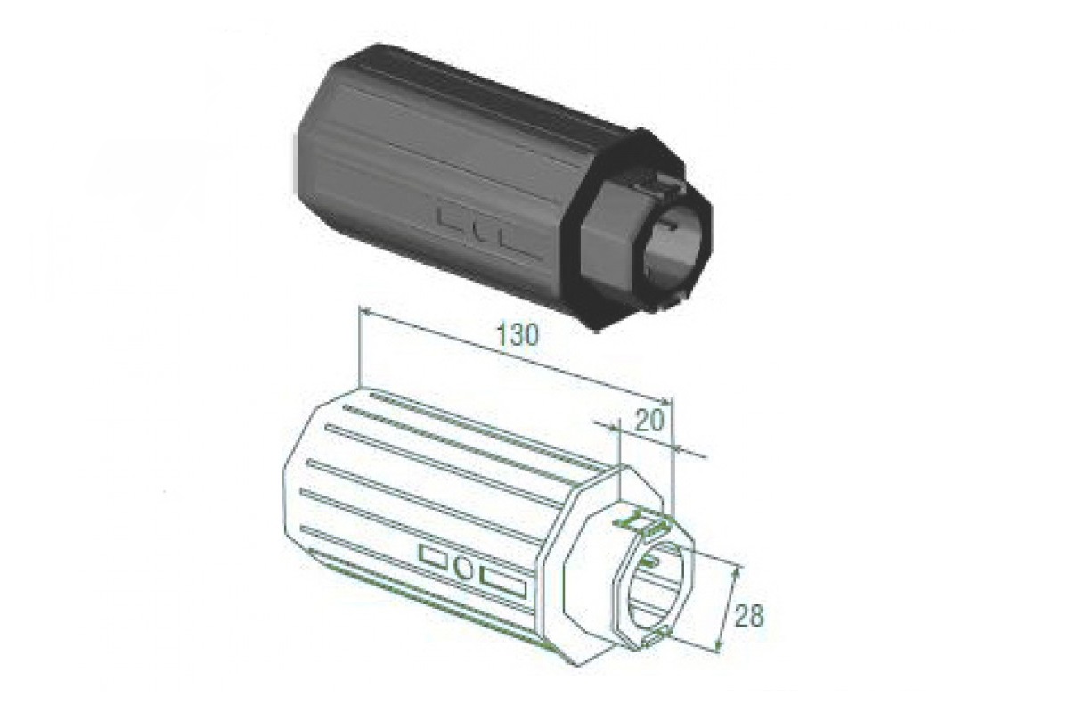 Для валов октогональных RT60. Применяется в трех вариантах: - под подшипник BB12x28; - под шкив TP125-TP190; - совместно со вставкой INS под редуктор W35M. Материал: ABS.